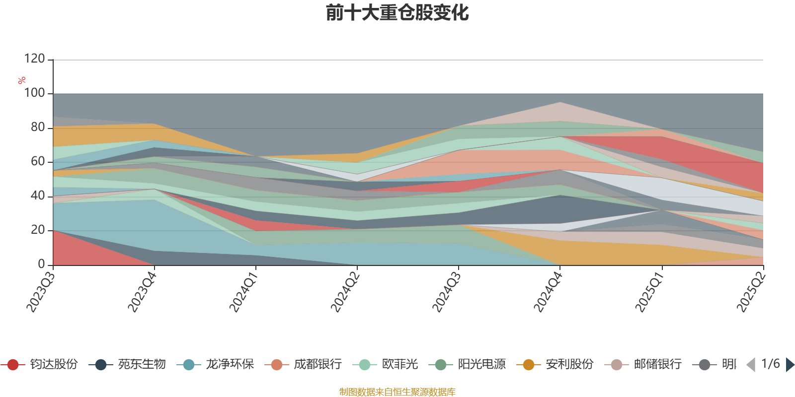 该基金持股集中度较高,近2年前十大重仓股集中度长期超过60%。截至2025年二季度末,基金十大重仓股分别是工商银行、中国移动、力诺药包、派林生物、邮储银行、明阳电气、成都银行、迈得医疗、新洋丰、贵州茅台。