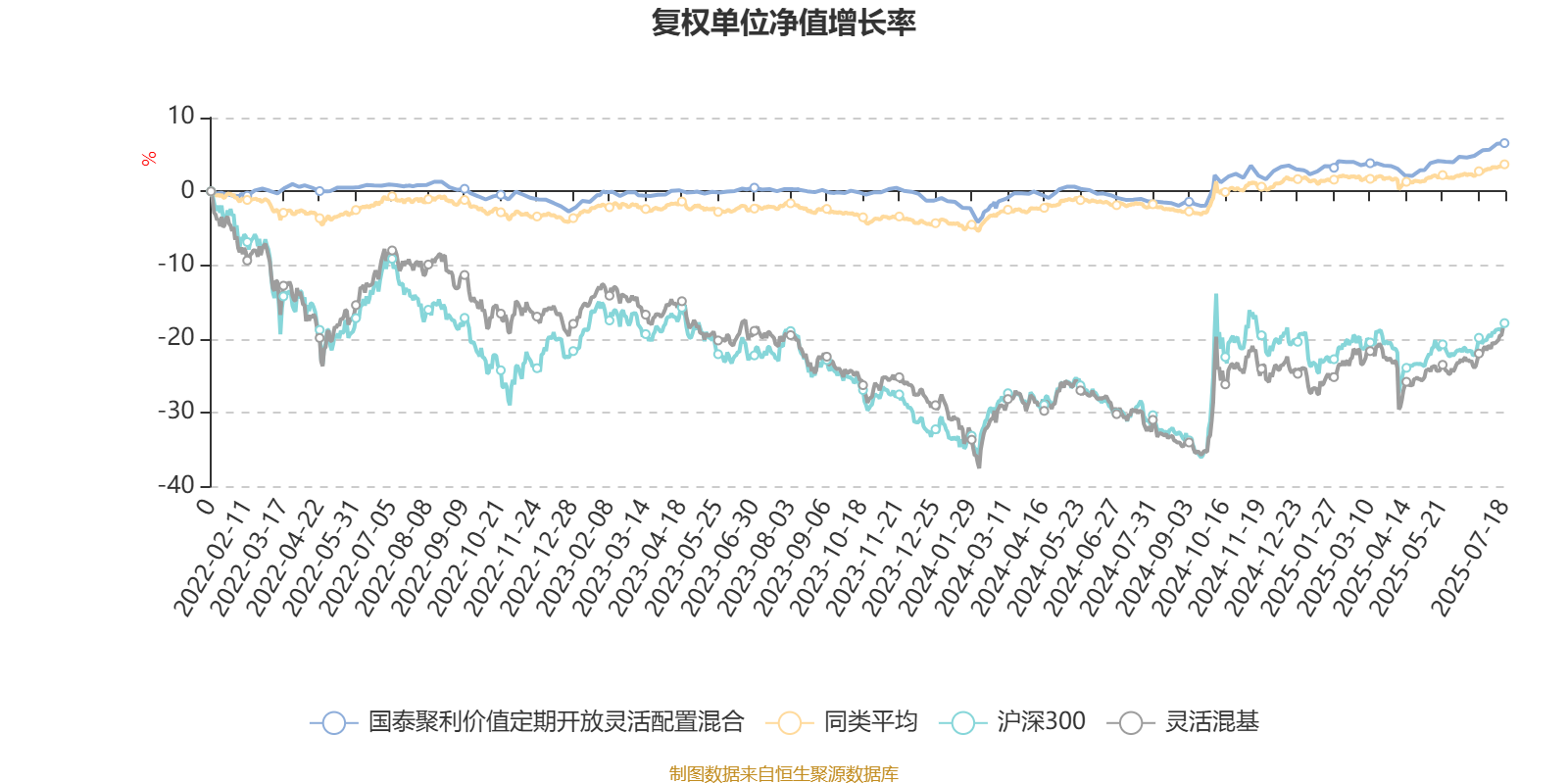 截至7月18日,国泰聚利价值定期开放灵活配置混合近三个月复权单位净值增长率为4.33%,位于同类可比基金19/142;近半年复权单位净值增长率为2.99%,位于同类可比基金40/142;近一年复权单位净值增长率为7.73%,位于同类可比基金36/142;近三年复权单位净值增长率为5.72%,位于同类可比基金68/142。