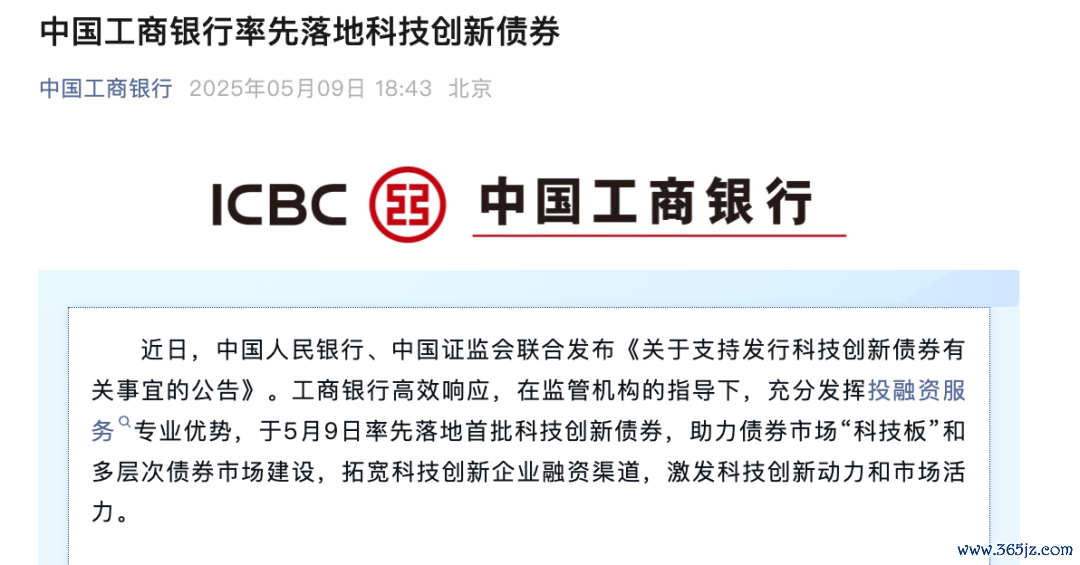 5月9日,工行、建行、中行、邮储银行、国开行等多家银行相继发布公告,透露其发行或承销科技创新债券的最新落地情况。