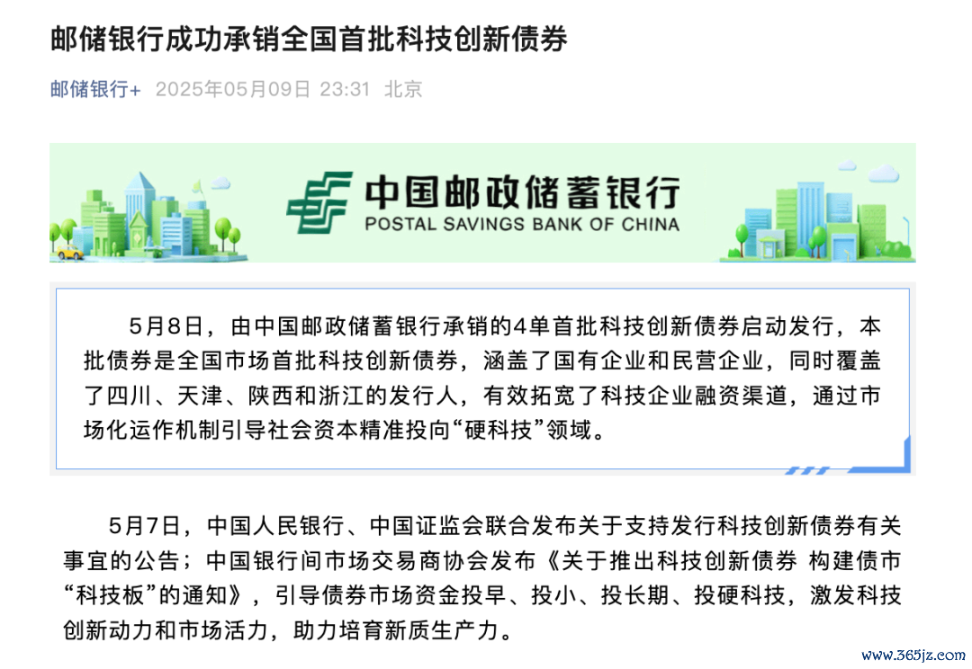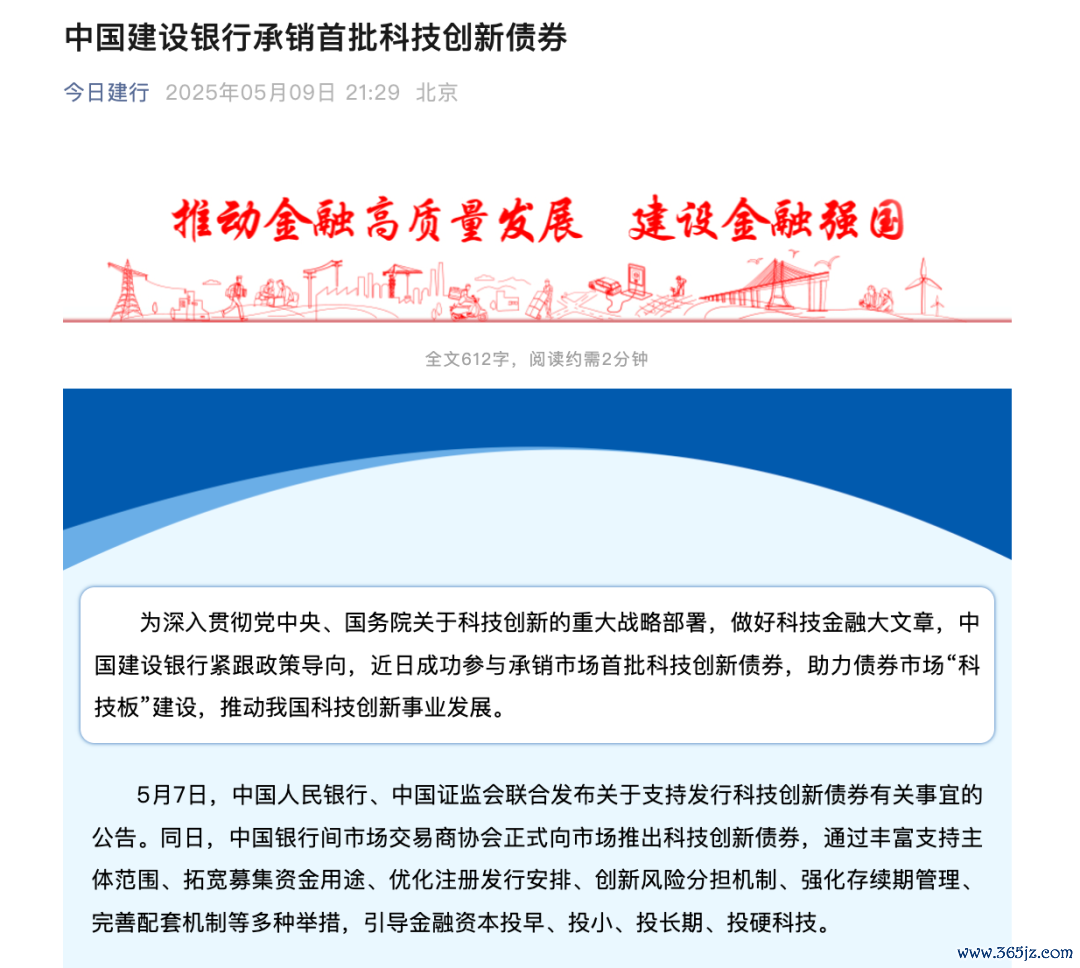建行、中行、邮储银行:成功承销首批科技创新债券